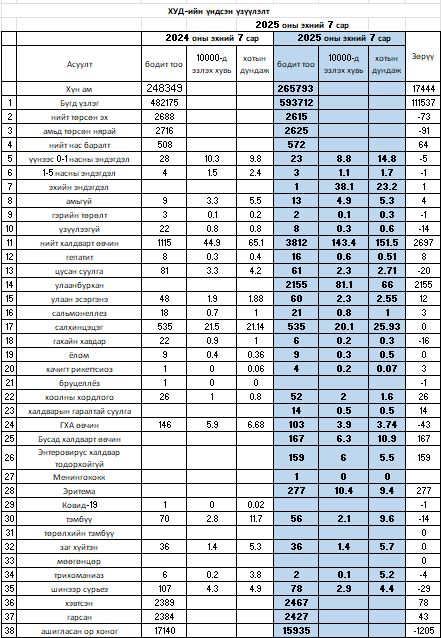 ХУД-ийн үндсэн үзүүлэлт 2025 оны 7 сар
