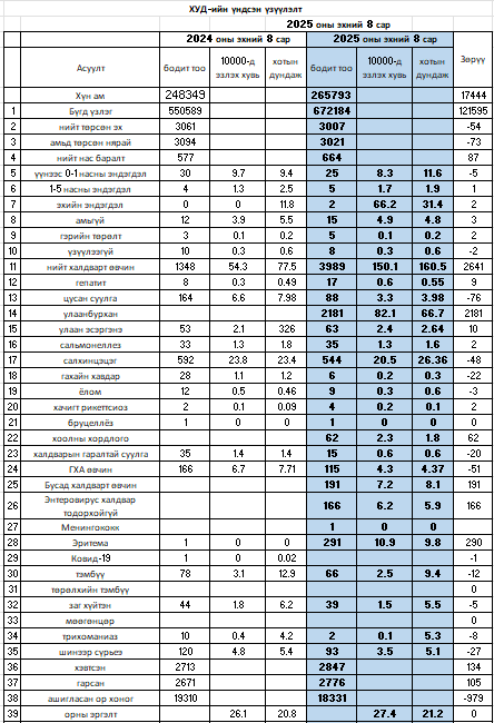 ХУД-ийн үндсэн үзүүлэлт 2025 оны 8 сар