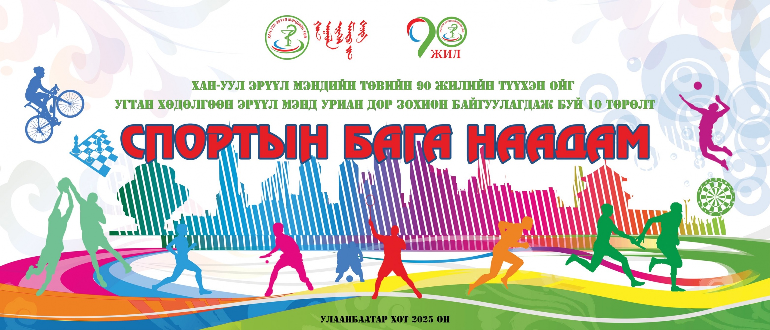 📌Хан-Уул Эрүүл мэндийн төвийн үүсгэн байгуулагдсаны түүхт 90 жилийн ойг угтан хөдөлгөөн эрүүл мэнд уриан дор зохион байгуулагдаж буй 10 төрөлт спортын наадмыг багийн болон ганцаарчилсан төрлүүдээр Хан-уул эрүүл мэндийн төв болон 22 өрхийн эрүүл мэндийн төвүүдийн дунд